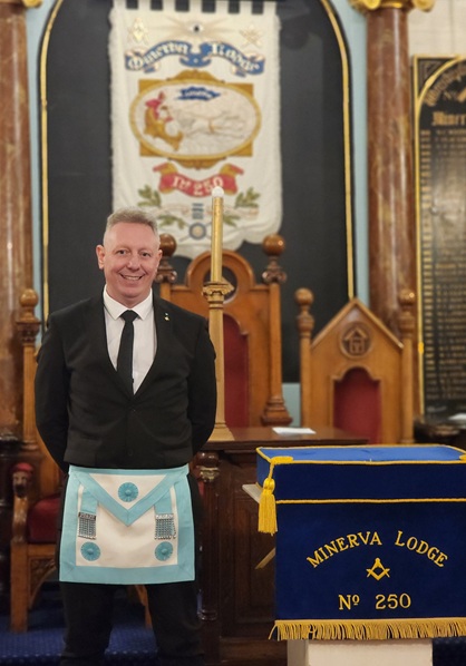 It is an important step forward on the Masonic journey. Brother Andrew Start of the Minerva Lodge 250 stepped up to the moment magnificently. The WM W Bro Richard Marshall opened the Lodge with admirable poise (especially as he'd only just arrived at the Lodge after seeing his brother whisked into hospital), received the Assistant Provincial Grand Master W Bro Steve Cox under the direction of Bro Lee Atkinson, ProvGStwd, and raised the Lodge to the 2°, upon which the essential questions leading to the next stage were well answered by the Candidate. ("That's a good Start," I thought to myself.)