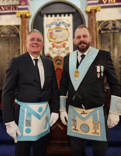 [Photograph of Bro Evaldas Korsakos and W Bro Dean Marshall by Bro Matthew Barber.]